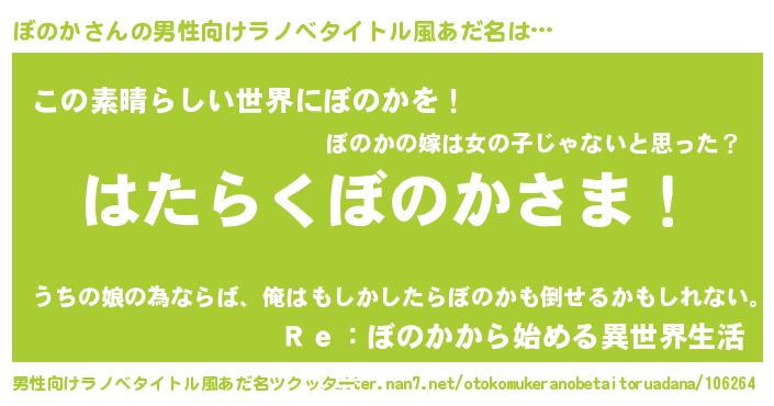 | 意味不明あだ名 | 『住所不定無職ぼのか(3歳)』『自称ぼのか』 |