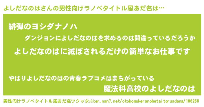 | 意味不明あだ名 | 『自称よしだなのは』 |