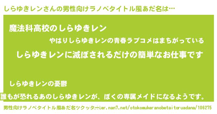 | 意味不明あだ名 | 『自称しらゆきレン』 |