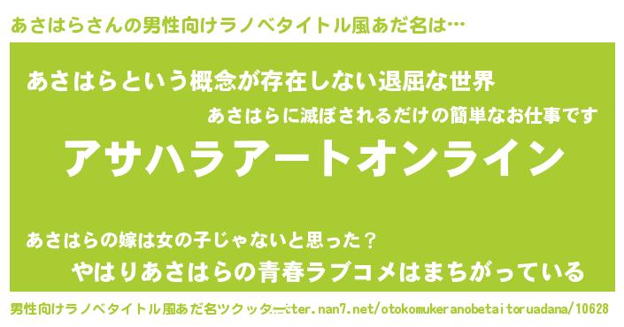 | ヘコむあだ名 | 『あさにー』『あさはら(遠い目)』 |