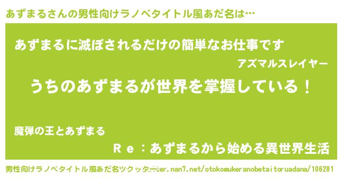 | 欧米人風あだ名 | 『あずまる・ステッグマイヤー』 |