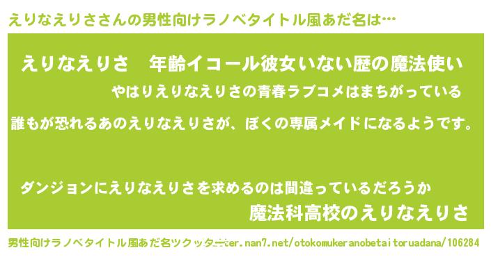 | 女子向けラノベタイトル風あだ名 | 『えりなえりさの契約王妃』 |