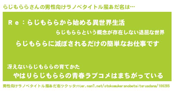 | 意味不明あだ名 | 『自称らじもらら』『永久保存らじもらら』 |
