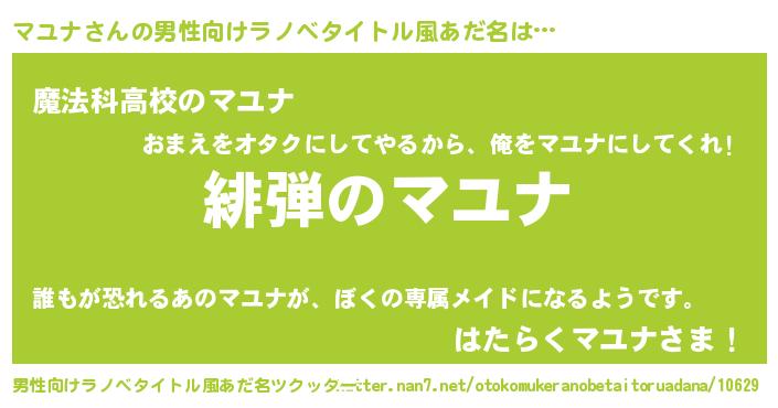 | ヘコむあだ名 | 『マユナ(爆)』『マユっちょ』 |