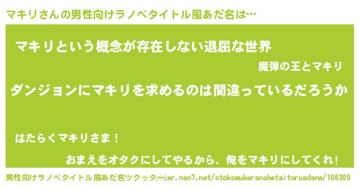 | 女子向けラノベタイトル風あだ名 | 『マキリの卵を拾いまして』 |