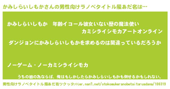 女子向けラノベタイトル風あだ名 | 『かみしらいしもかは平凡を望む』 |
