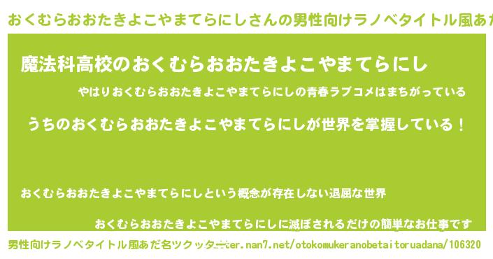 | 意味不明あだ名 | 『自称おくむらおおたきよこやまてらにし』 |