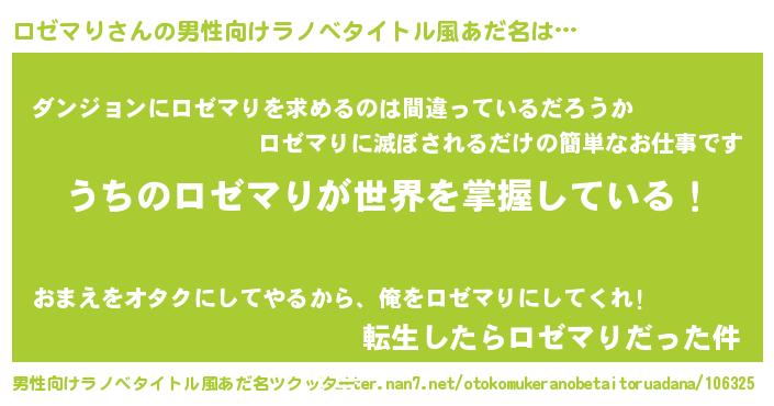| 女子向けラノベタイトル風あだ名 | 『男装ロゼマりの憂鬱な任務』 |