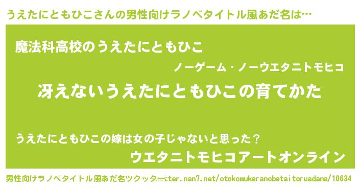 | 女子向けラノベタイトル風あだ名 | 『シンデレラうえたにともひこ家の靴箱館』 |