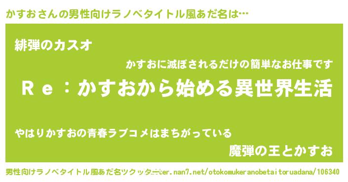 | 女子向けラノベタイトル風あだ名 | 『闇のかすお』『横柄かすおと宰相陛下』 |