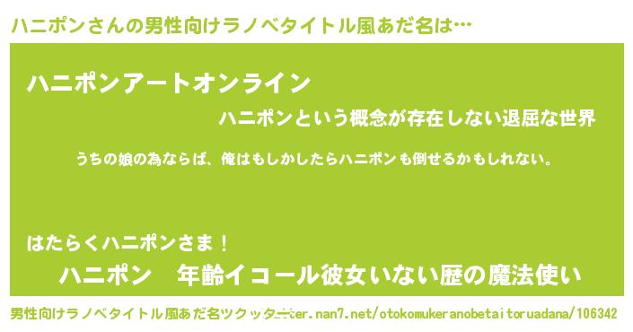 | 胡散臭い通販商品みたいなあだ名 | 『運命の人と巡り会える高級そうな絵画…その名も「ハニポン」』 |