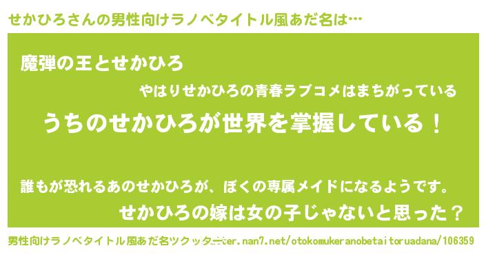 | 胡散臭い通販商品みたいなあだ名 | 『あなたにだけ特別に提供する100年もののヴィンテージワイン…その名も「せかひろ」』 |