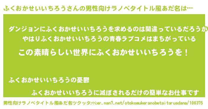 | 伝説のあだ名 | 『解き放たれた遊び人ふくおかせいいちろう』 |