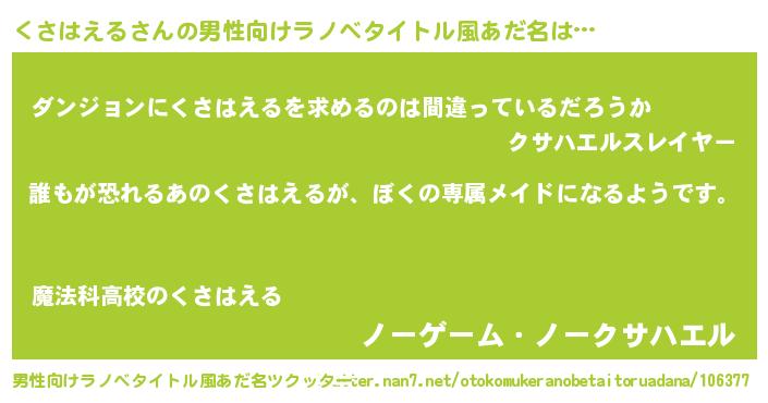 | 意味不明あだ名 | 『永久保存くさはえる』『自称くさはえる』 |