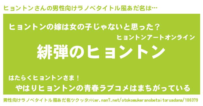| 女子向けラノベタイトル風あだ名 | 『シンデレラヒョントン家の靴箱館』 |