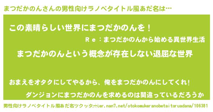 | 女子向けラノベタイトル風あだ名 | 『異世界で失敗しない100のまつだかのん』 |