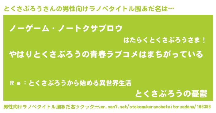 | 女子向けラノベタイトル風あだ名 | 『とくさぶろうの雑貨屋さん』 |