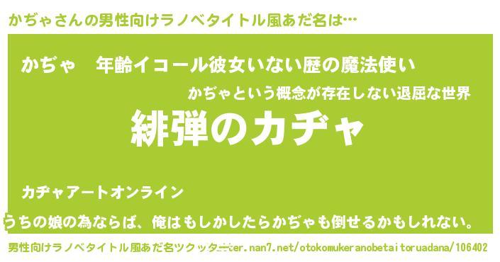 | 胡散臭い通販商品みたいなあだ名 | 『幸せが訪れる高級そうな絵画…その名も「かぢゃ」』 |