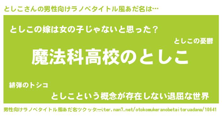 | ヒーロー風カッコイイあだ名 | 『サイバー戦士トシコ』『銀牙騎士トシ』 |