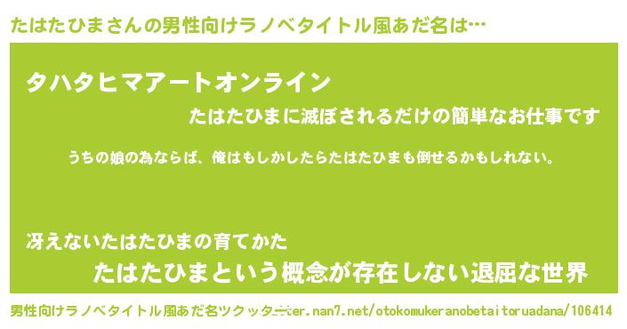 | 女子向けラノベタイトル風あだ名 | 『たはたひま伯爵の花嫁』 |