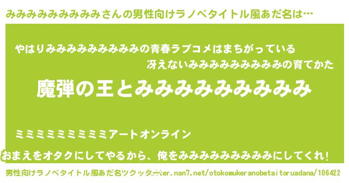 | 女子向けラノベタイトル風あだ名 | 『乙女ゲームの破滅フラグしかない悪役みみみみみみみみみに転生してしまった…』 |