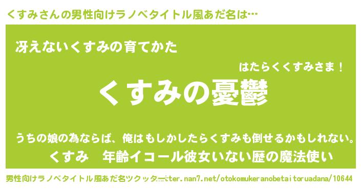| 女子向けラノベタイトル風あだ名 | 『(仮)くすみのやんごとなき事情』 |