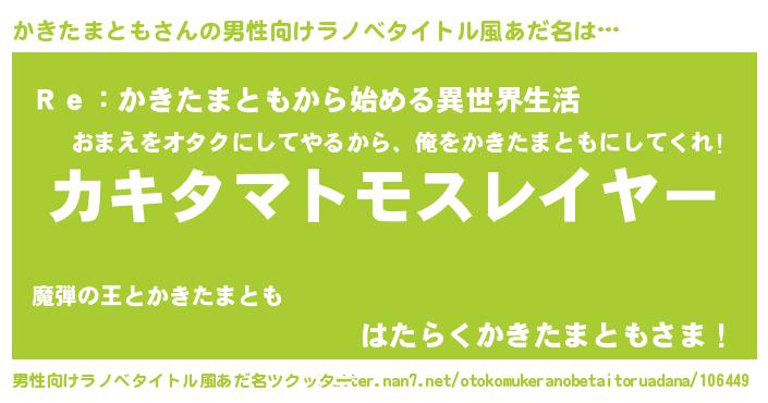 | 肩書あだ名 | 『かきたまとも中尉』『かきたまとも総統』 |