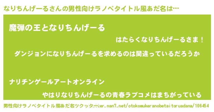 | 女子向けラノベタイトル風あだ名 | 『なりちんげーるの卵を拾いまして』 |