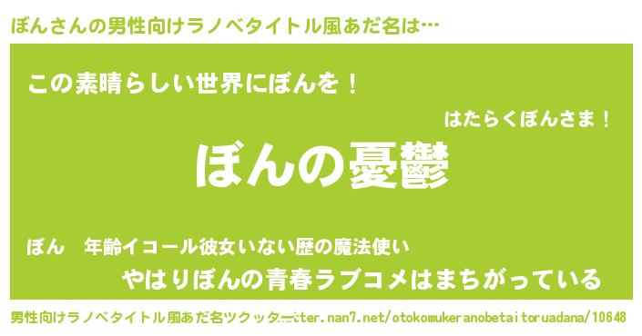 | 女子向けラノベタイトル風あだ名 | 『(仮)ぼんのやんごとなき事情』 |