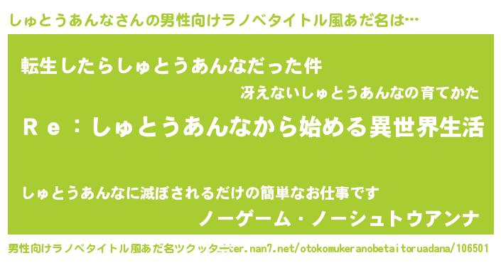 | 意味不明あだ名 | 『自称しゅとうあんな』 |