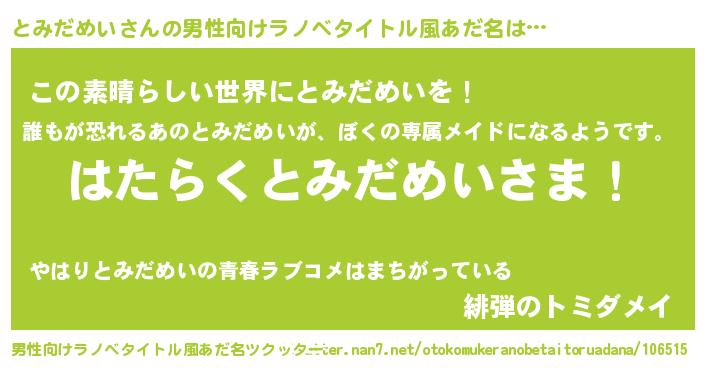 | 意味不明あだ名 | 『住所不定無職とみだめい(10歳)』 |