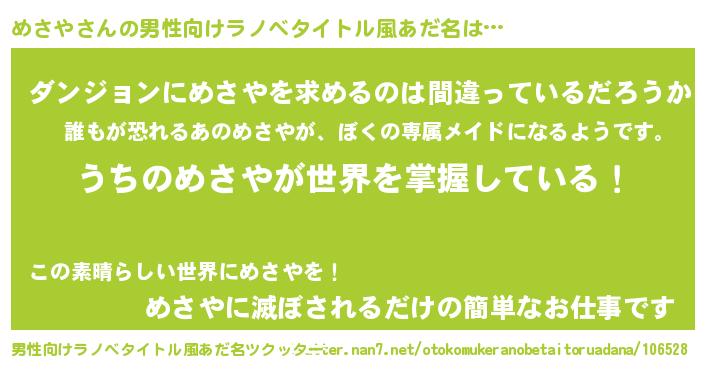 | 女子向けラノベタイトル風あだ名 | 『男装めさやの憂鬱な任務』 |