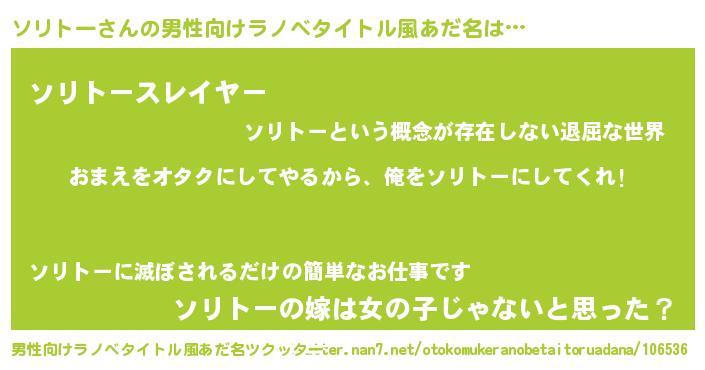 | 女子向けラノベタイトル風あだ名 | 『ソリトー夫妻のなれそめ』 |