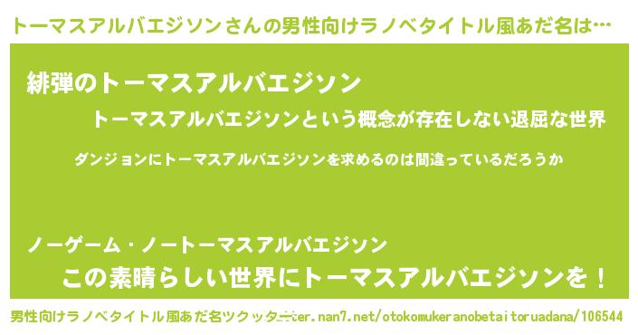 | 女子向けラノベタイトル風あだ名 | 『トーマスアルバエジソンは平凡を望む』 |