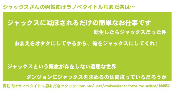 | ヘコむあだ名 | 『ジャお』『ジャックス(遠い目)』 |