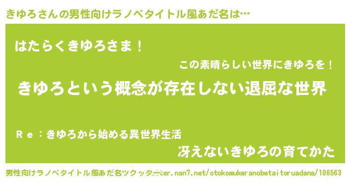| 女子向けラノベタイトル風あだ名 | 『きゆろの契約王妃』『闇のきゆろ』 |