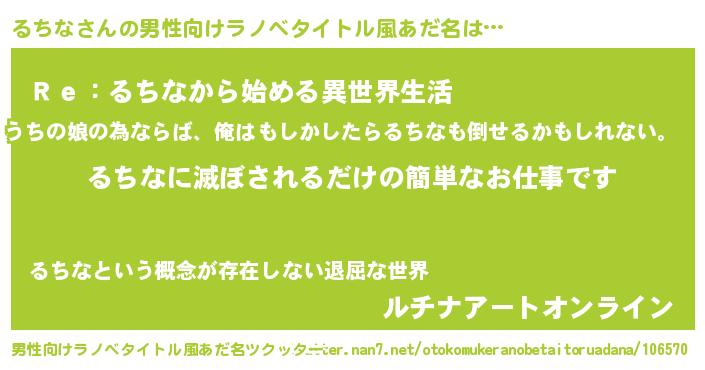 | ヘコむあだ名 | 『るちっふぃ~』『牛乳』『るちお』 |