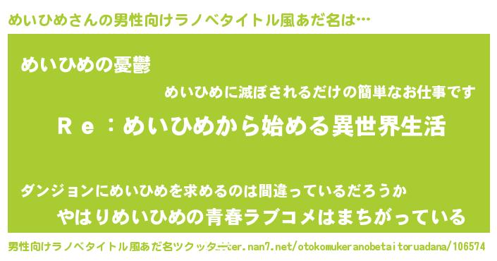 | 女子向けラノベタイトル風あだ名 | 『めいひめストレイドッグス』 |