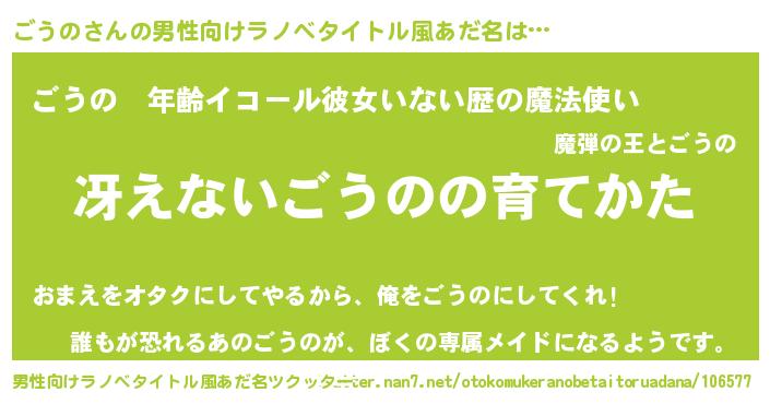 | ヘコむあだ名 | 『ごうの(震え声)』『ごう太郎』 |