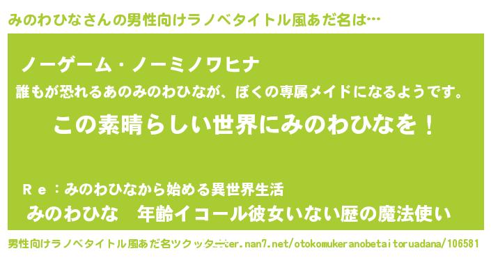 | 意味不明あだ名 | 『住所不定無職みのわひな(50歳)』 |
