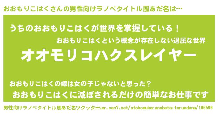 | 胡散臭い通販商品みたいなあだ名 | 『絶対に幸福をもたらす水素水…その名も「おおもりこはく」』 |
