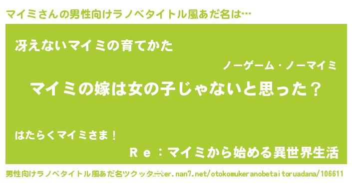 | 女子向けラノベタイトル風あだ名 | 『マイミ様がみてる』『闇のマイミ』 |
