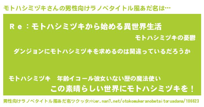 | 胡散臭い通販商品みたいなあだ名 | 『伝統あるペンダント…その名も「モトハシミヅキ」』 |