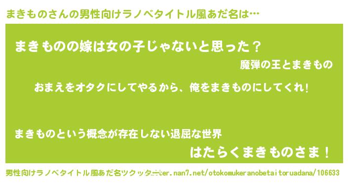 | 女子向けラノベタイトル風あだ名 | 『まきもの夫妻のなれそめ』 |