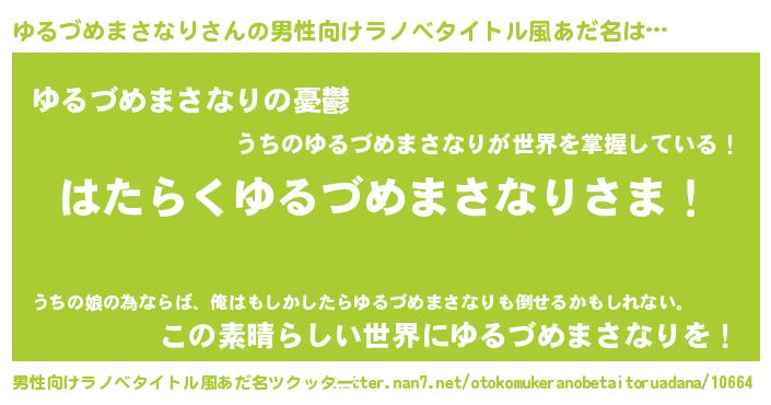 | ヒーロー風カッコイイあだ名 | 『スーパーユルヅメマサナリ』 |