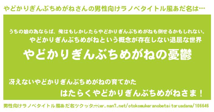 | 女子向けラノベタイトル風あだ名 | 『(仮)やどかりぎんぶちめがねのやんごとなき事情』 |