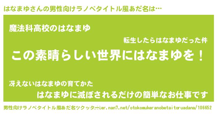 | 女子向けラノベタイトル風あだ名 | 『悪役はなまゆに転生したようですが、知った事ではありません』 |