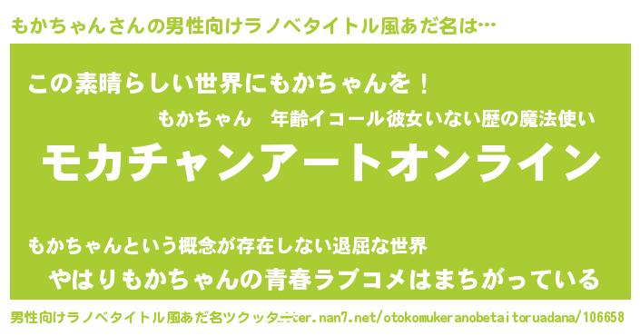 | 女子向けラノベタイトル風あだ名 | 『もかちゃん姫と円卓の騎士』 |