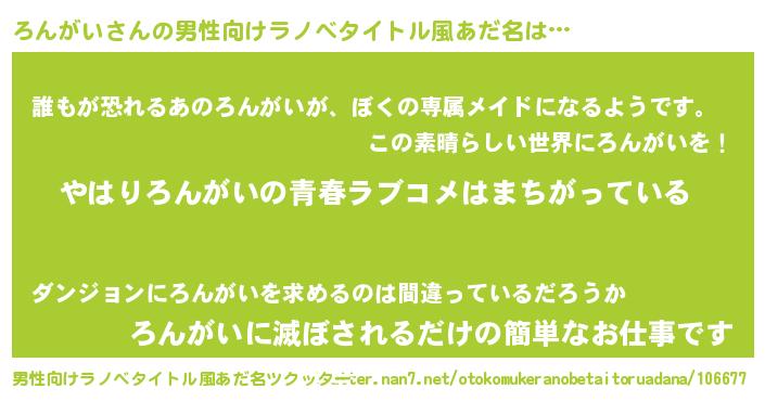| 胡散臭い通販商品みたいなあだ名 | 『世界が平和になる高級そうな壺…その名も「ろんがい」』 |