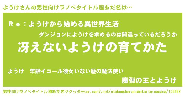 | 意味不明あだ名 | 『自称ようけ』『住所不定無職ようけ(59歳)』 |